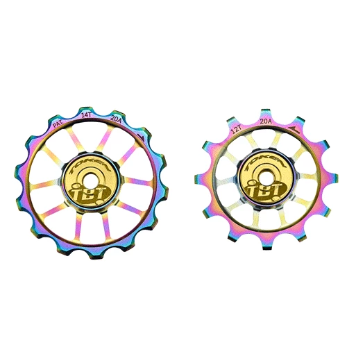 Pulleyhjulene har hhv. 12 og 14 tænder og passer på standard skiftearm.